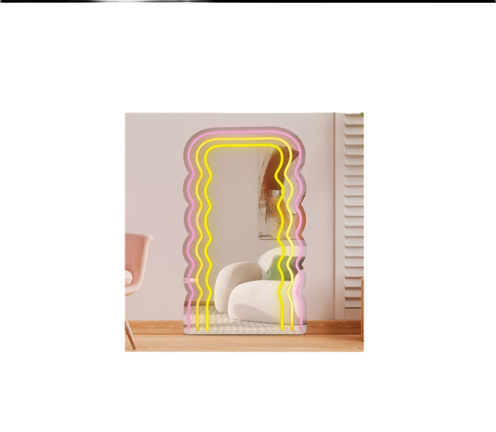 Oglindă dreptunghiulară cu colțuri rotunjite și iluminare LED neon. Putere 5W, 1A. Perfectă pentru baie, hol, living sau dormitor. Design modern, economisește energie.