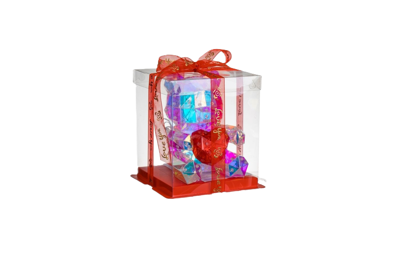 Ambalata intr-o cutie cadou transparenta cu panglica rosie si mesaj „Love You”.